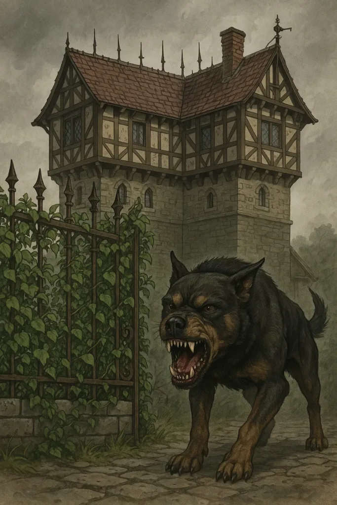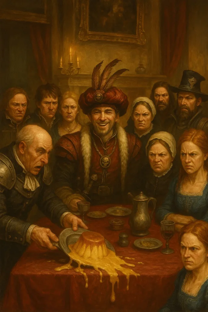 Nos colamos en la mansión de Teugen. El jardín estaba patrullado, pero la madreselva fue nuestra aliada. Úrsula, en un gesto profético, lanzó un trozo de embutido a un perro guardián. El salchichón salvador. Tim se infiltró disfrazado de sirviente con un flan en la cara. Duró poco. El flan voló, bañó a todos los comensales y lo echaron a la cocina.