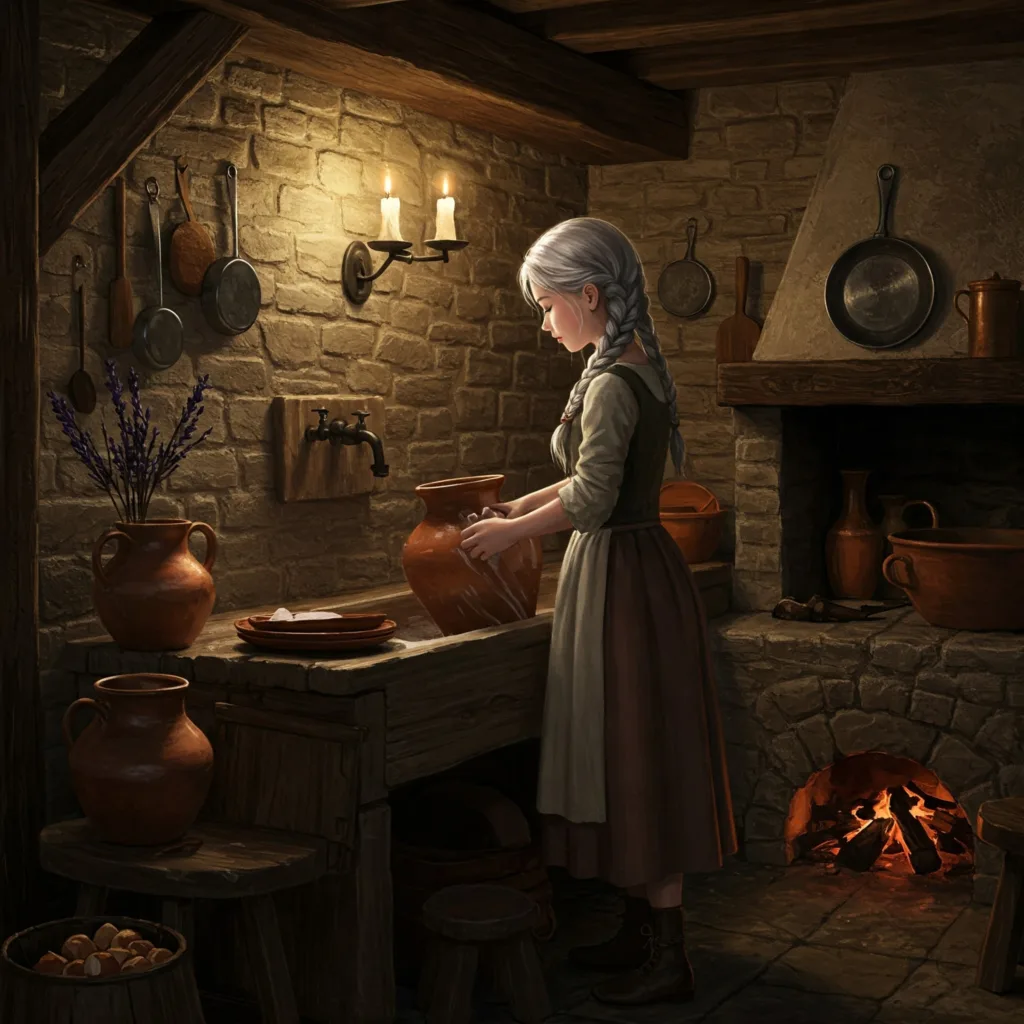 Con diez años Katya empezó a ayudar en las tareas del hospital en el que había nacido, regentado ahora por el culto de Shallya. Ayudaba principalmente en las tareas de la cocina. Eran tiempos tranquilos aunque Katya tenia mucha aversión a la noche del misterio. Cuando llegó la noche del misterio de su decimotercer aniversario, notó cómo, mientras todo el mundo en el hospital dormía, unos extraños sonídos provenían del alcantarillado bajo de la cocina, cerca de donde ella dormía. Se escondió enseguida en un pequeño armario, bajo ropa de cama. Notó unos pasos que se acercaron y abrieron la puerta de su diminuto cuarto. Los seres que entraron husmearon un poco en la habitacion y abrieron el armario en el que estaba, para luego cerrarlo. Oyó como esos seres se iban sin haberla encontrado. Siguió oyendo pasos, alboroto y algunos gritos. Era obvio que esos seres llegados de las profundidades estaban capturando a gente y robando.